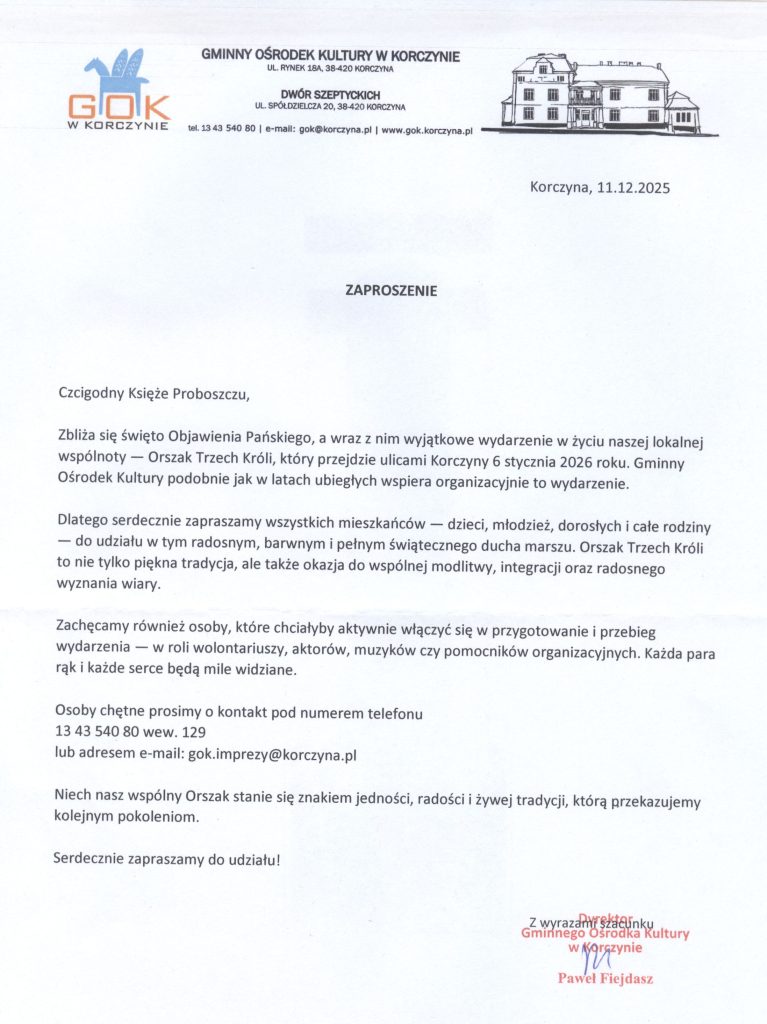 Gminny Ośrodek Kultury w Korczynie zaprasza na Orszak Trzech Króli